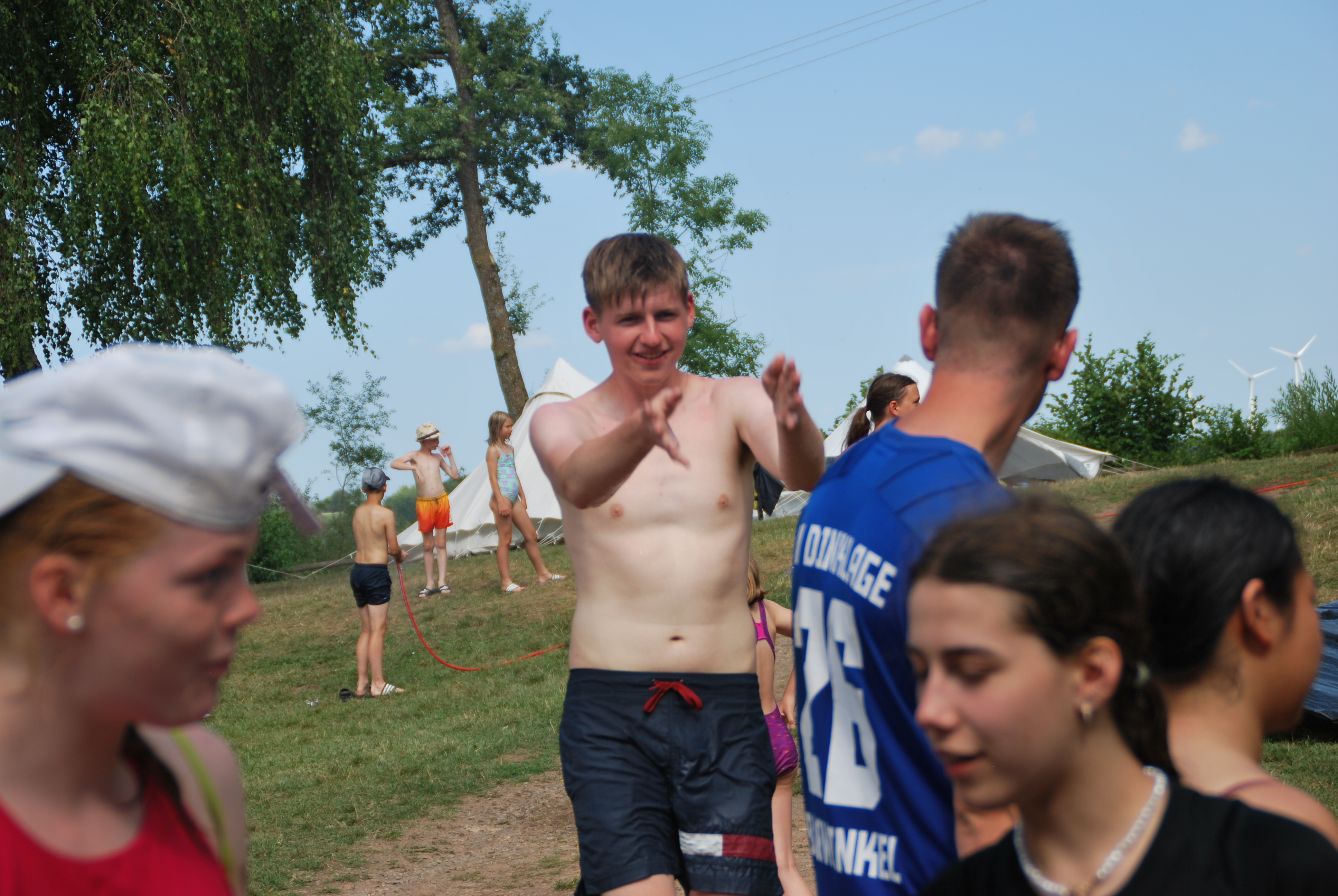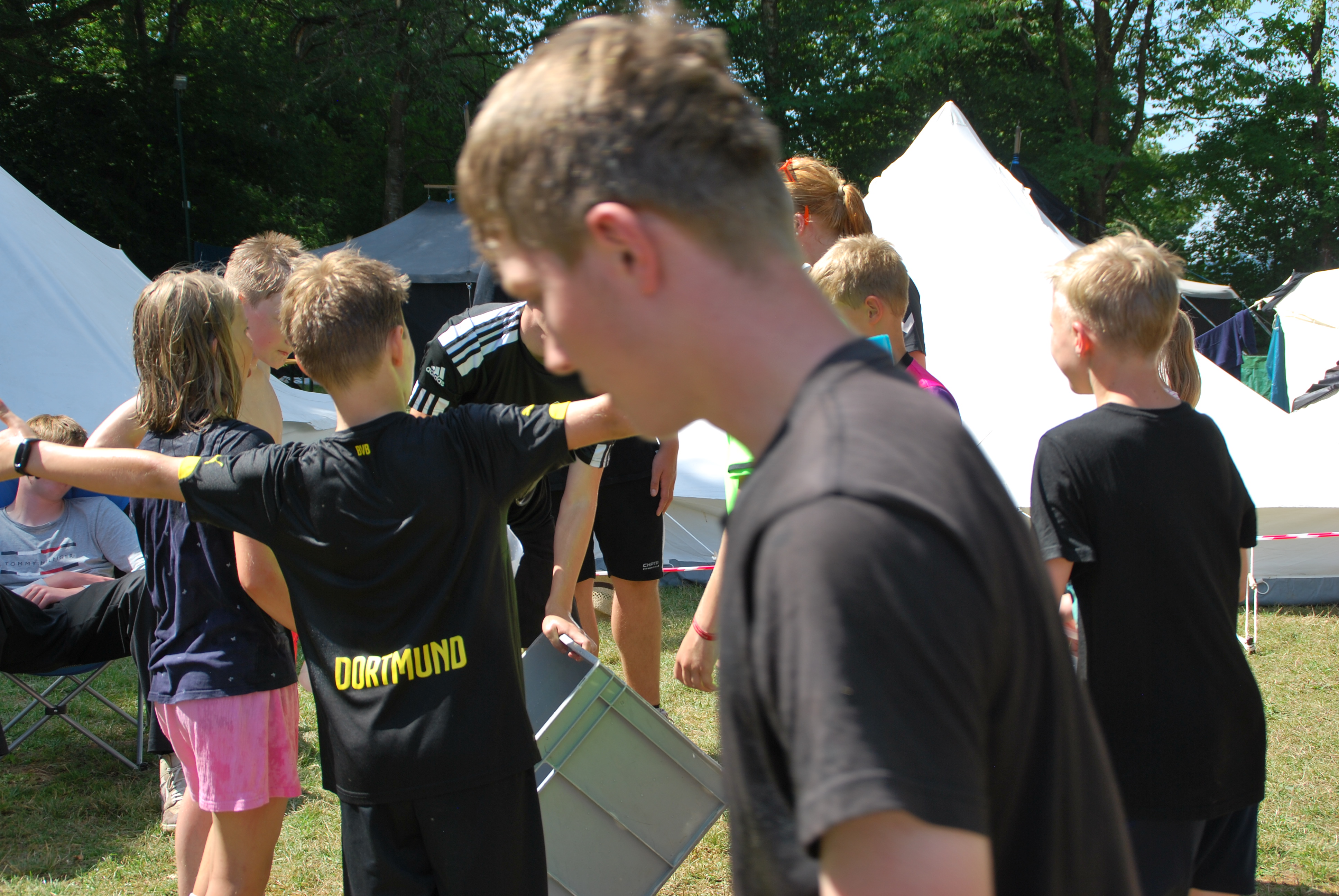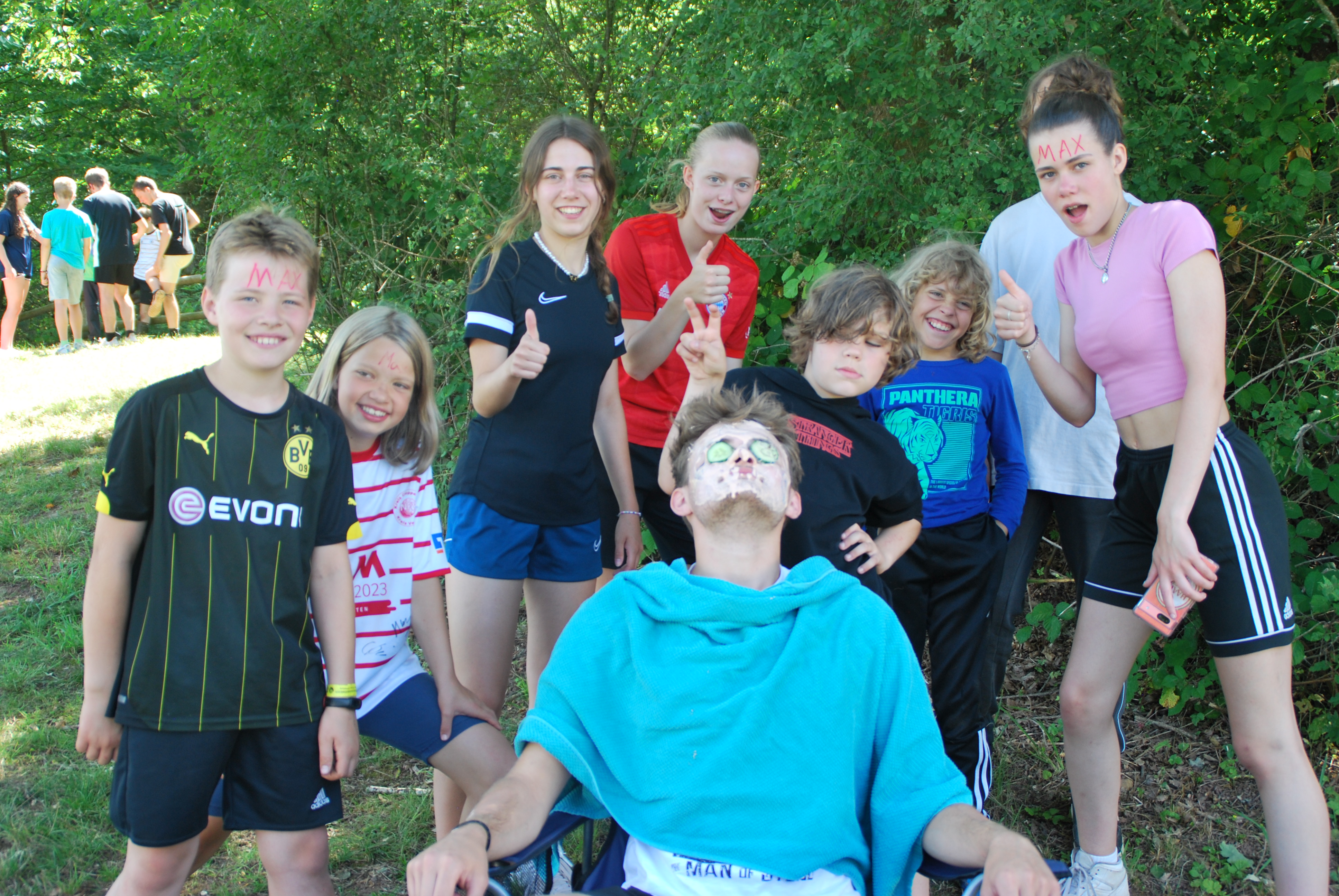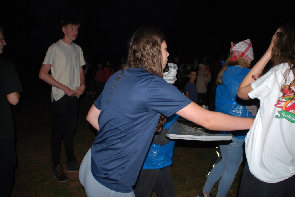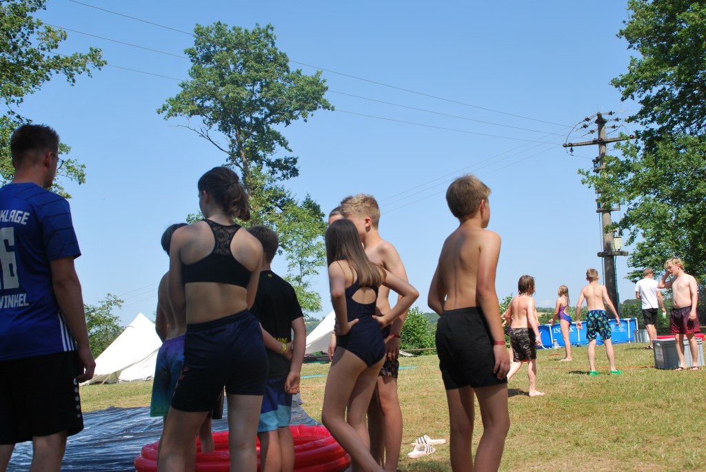 Dann kam auch schon einer der coolsten Tage, nämlich der Max-Tag, bei den wir durch Stationen die wir gelost hatten, ein Bingo-Feld ausfüllen mussten. Die Aufgaben waren z.B. Haare waxen oder das Gesicht mit einer schönen Gurken-Dressing Maske beschmieren lassen. Zur Abkühlung bei dem heißem Wetter hatten wir dann auch viele Spiele in Verbindung mit Wasser gebracht, wie z.B. Brennball oder Fußball. Das klassische Flunkyball war natürlich auch dabei. Die Lagerschweine waren dieses Jahr alle der Gruppe “Gang Gang”, da ihr Zelt die Jury nicht so ganz überzeugt hatte. Dennoch war der Abend spaßig, da der Discoabend auch dieses Jahr wieder ein totaler Knaller war.
