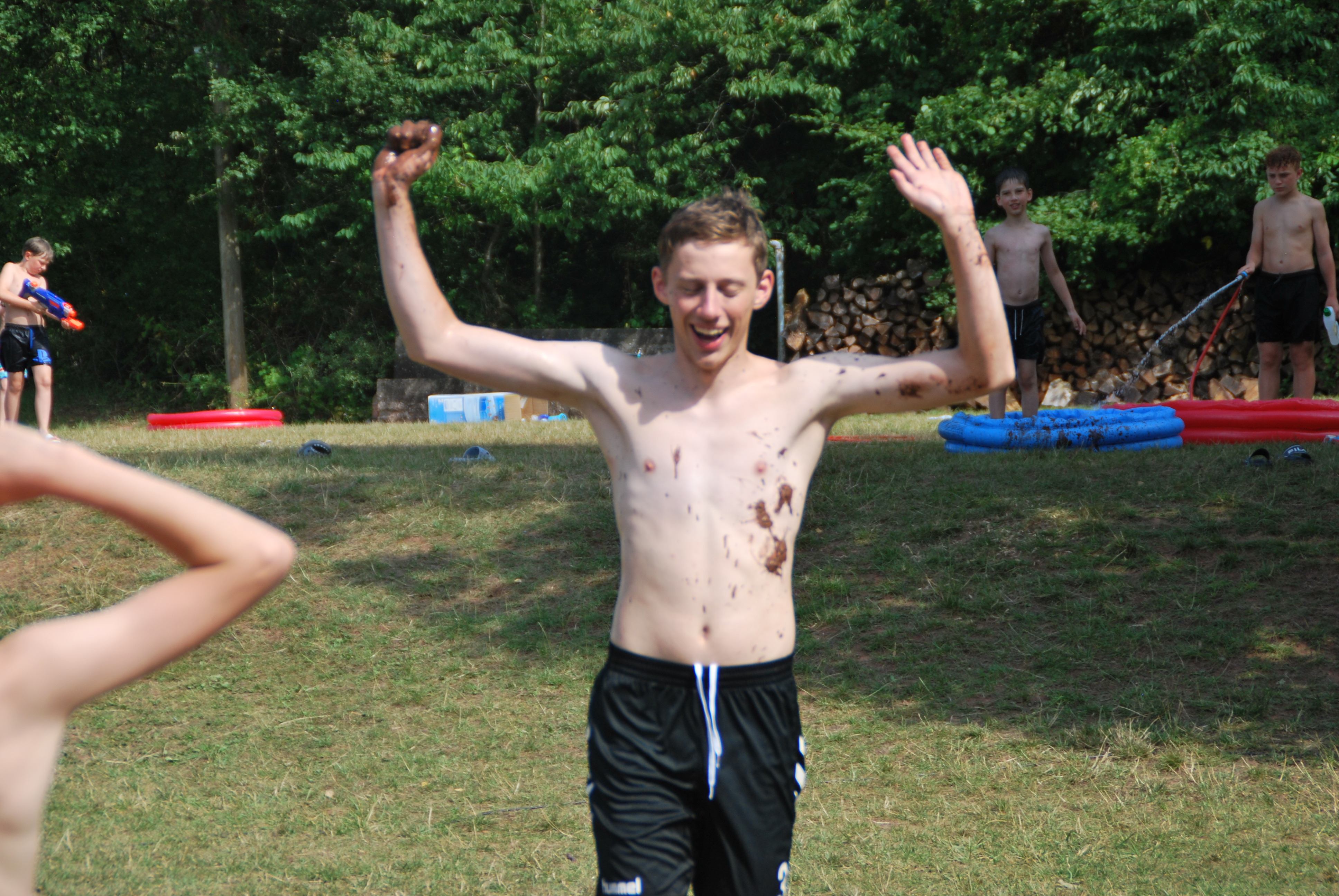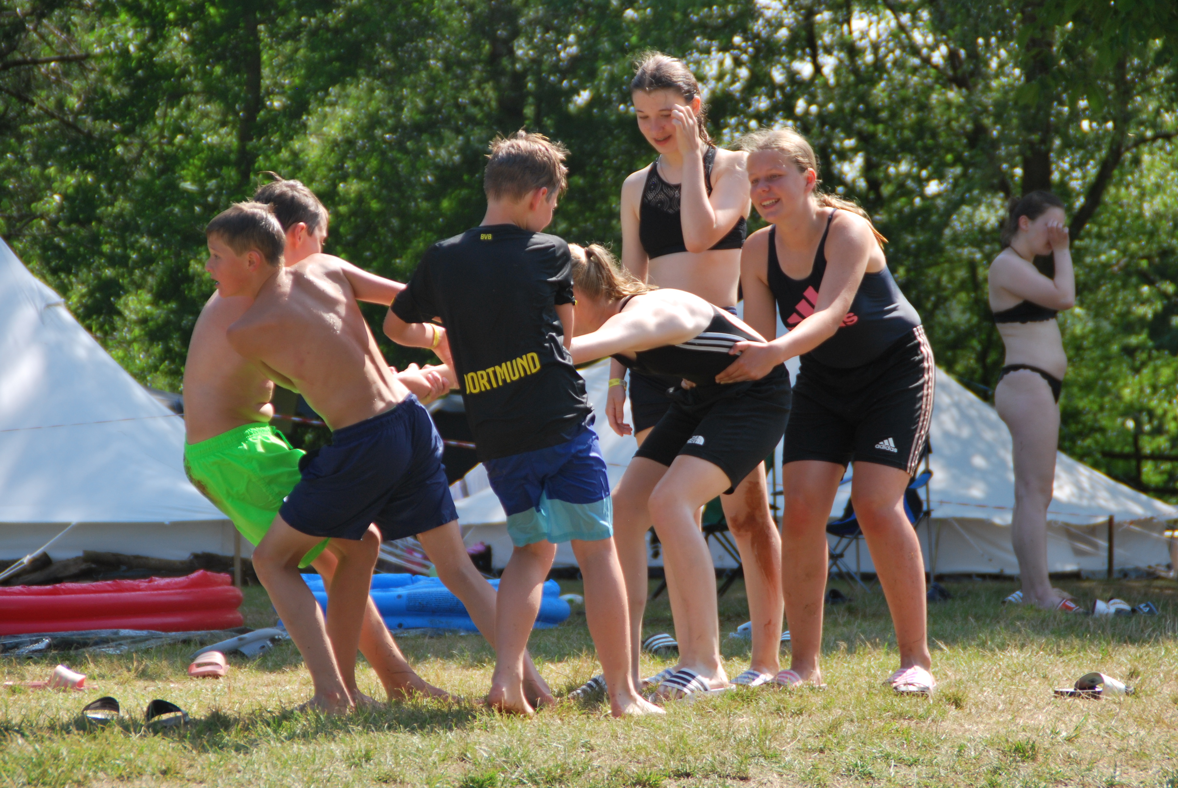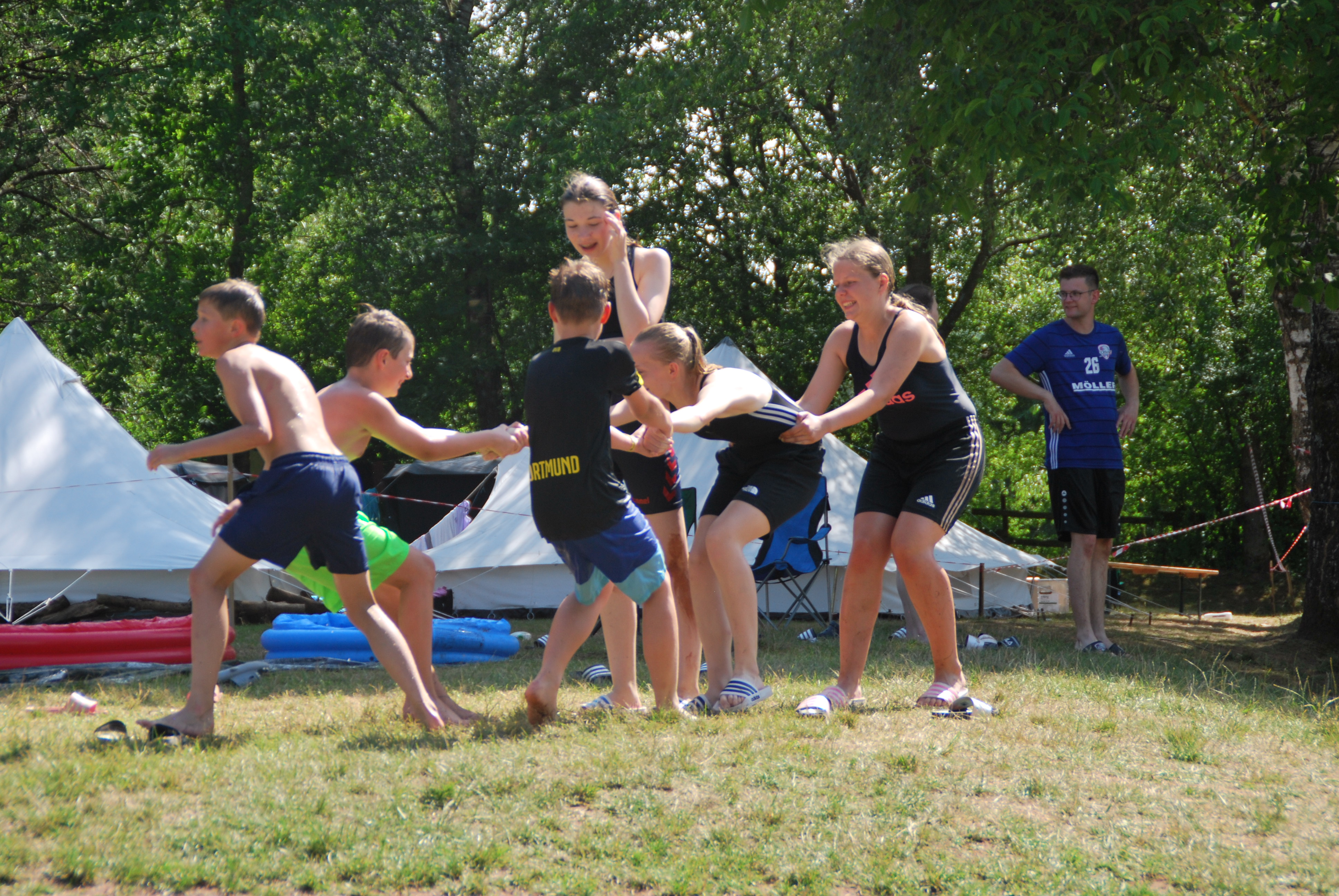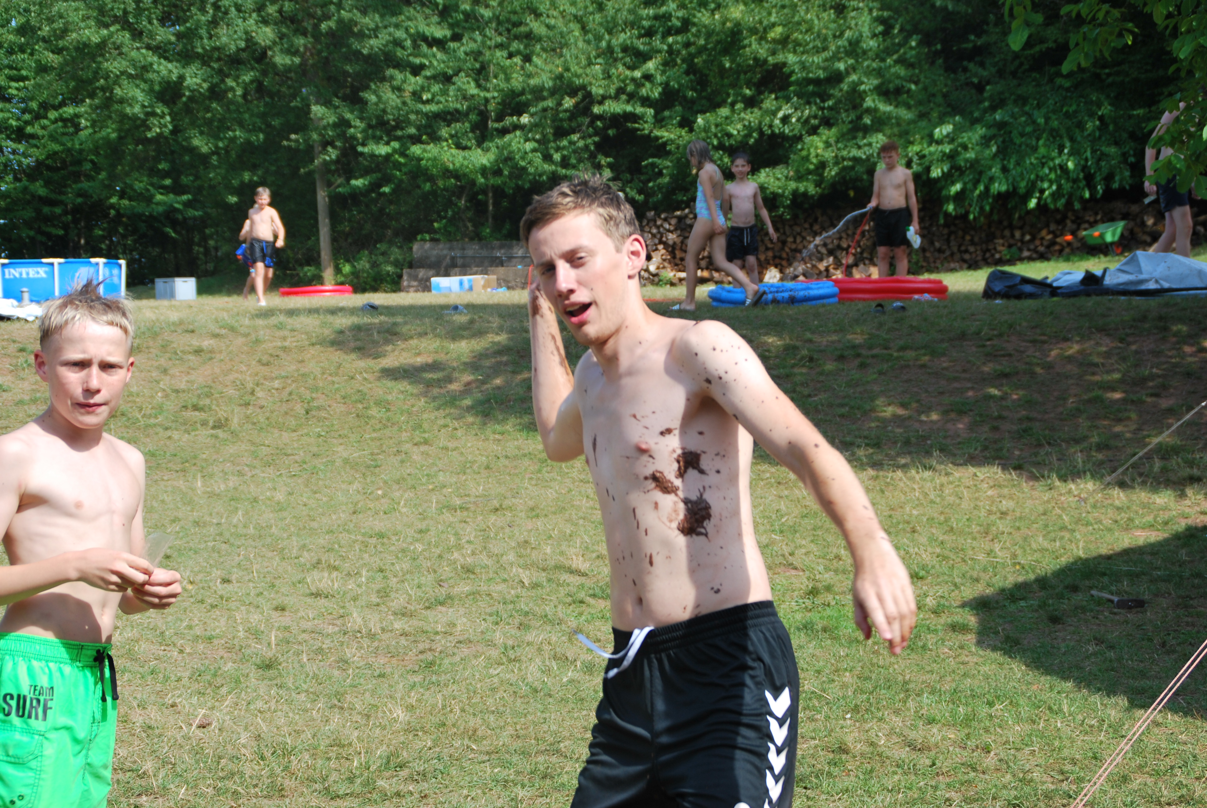 Dann kam auch schon einer der coolsten Tage, nämlich der Max-Tag, bei den wir durch Stationen die wir gelost hatten, ein Bingo-Feld ausfüllen mussten. Die Aufgaben waren z.B. Haare waxen oder das Gesicht mit einer schönen Gurken-Dressing Maske beschmieren lassen. Zur Abkühlung bei dem heißem Wetter hatten wir dann auch viele Spiele in Verbindung mit Wasser gebracht, wie z.B. Brennball oder Fußball. Das klassische Flunkyball war natürlich auch dabei. Die Lagerschweine waren dieses Jahr alle der Gruppe “Gang Gang”, da ihr Zelt die Jury nicht so ganz überzeugt hatte. Dennoch war der Abend spaßig, da der Discoabend auch dieses Jahr wieder ein totaler Knaller war.