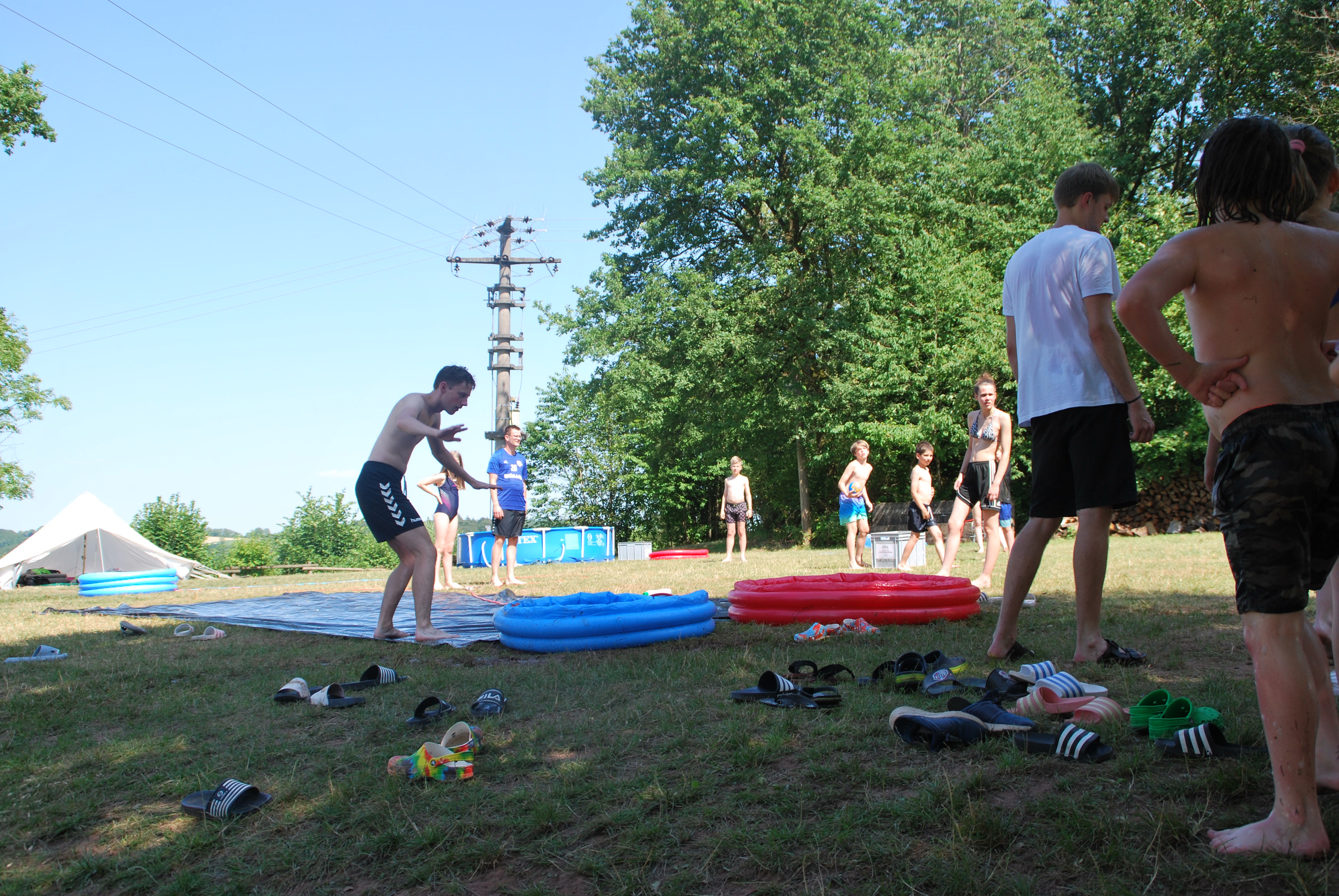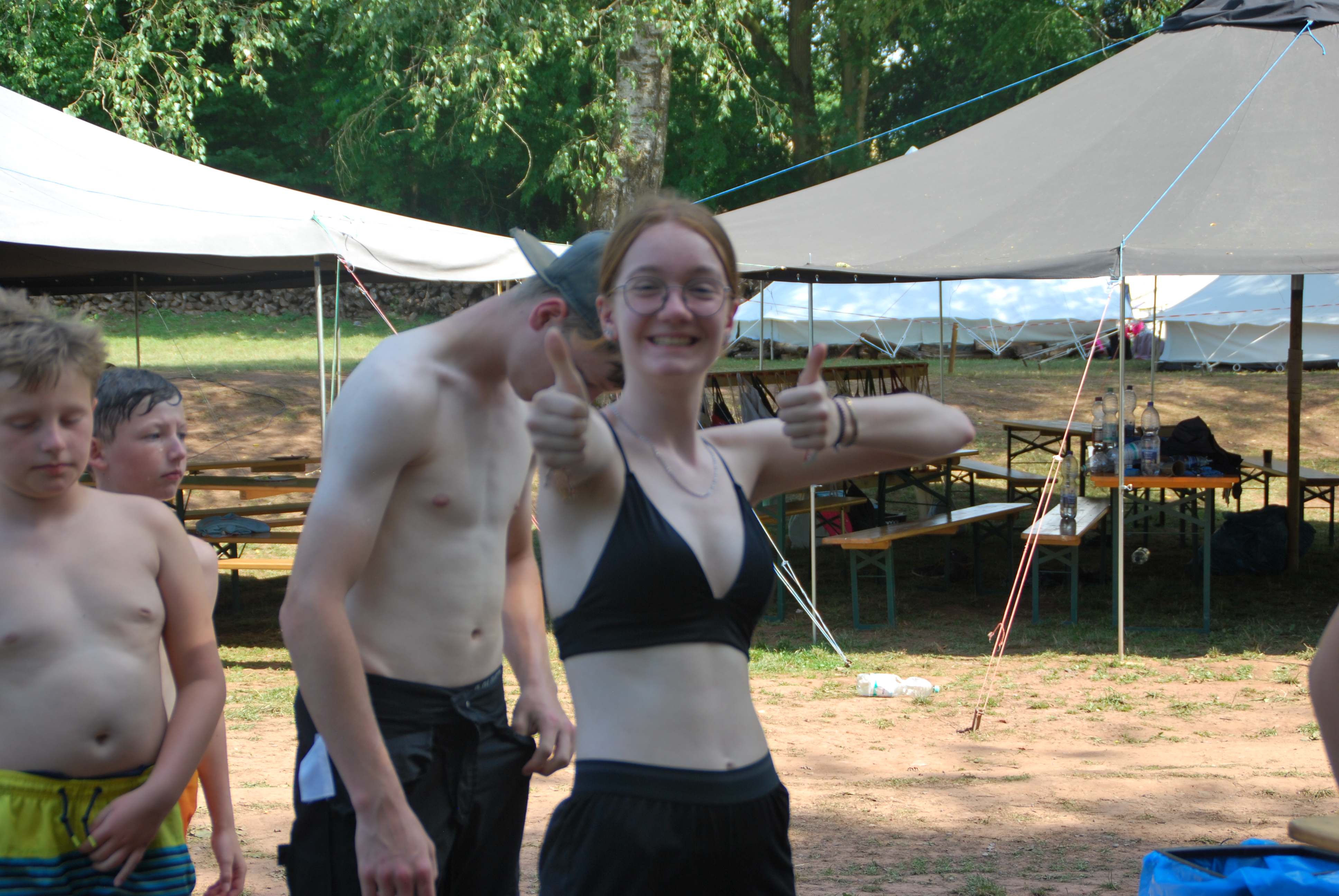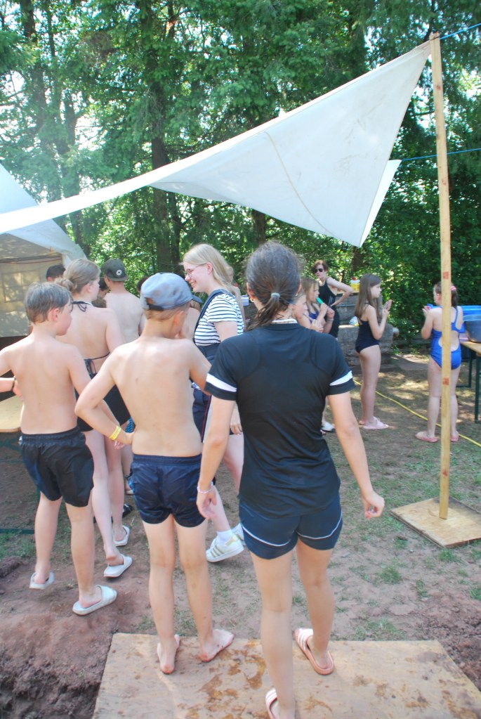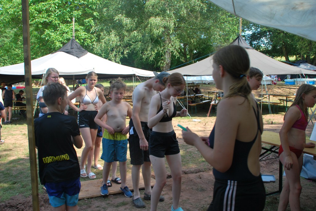 Der anstrengende Hajk hat uns dann am nächsten Tag ins Spaßbad Calypso gezogen, bei dem alle sehr viel Spaß hatten mit den vielen Rutschen und einer geilen Poolbar. Am Abend wurden dann die Paare des Lagers bei der Lagerhochzeit auf die Probe gestellt, bei der die Kommunikation, Kreativität und Zusammenarbeit gefragt war. Mit der verzückenden Lagerhochzeit ging es leider auch schon zum letzten mal ins Bett im Lager.